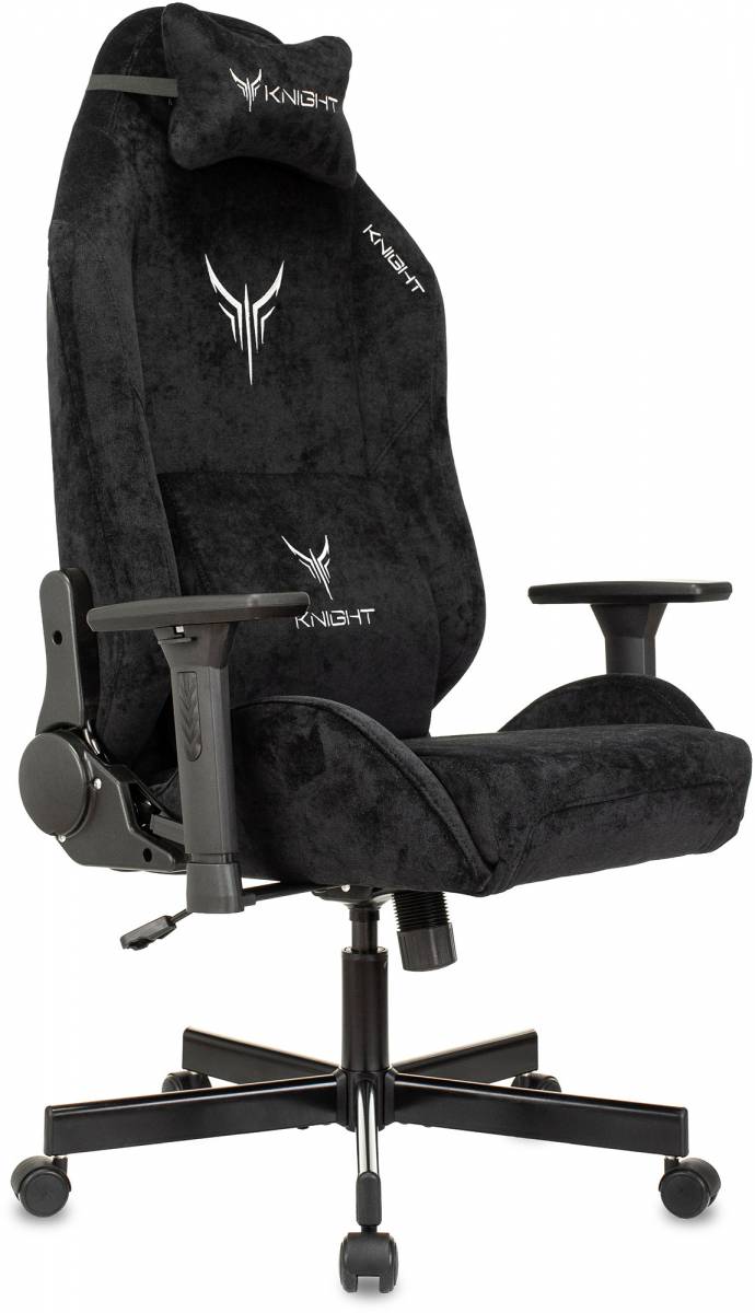 • Кресло игровое Knight N1 Fabric черный Light-20 с подголов. крестов. металл
