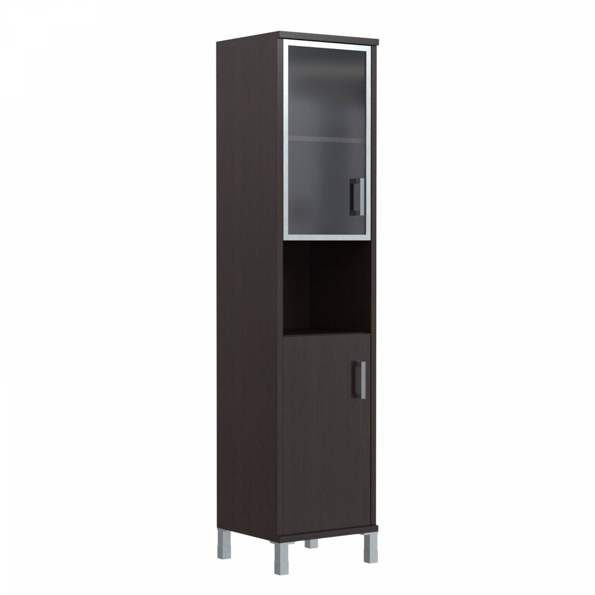 Шкаф-колонка высокая с малой стеклянной дверью в AL-рамке и глухой B 431.9(L) Венге Магия 475х450х2054